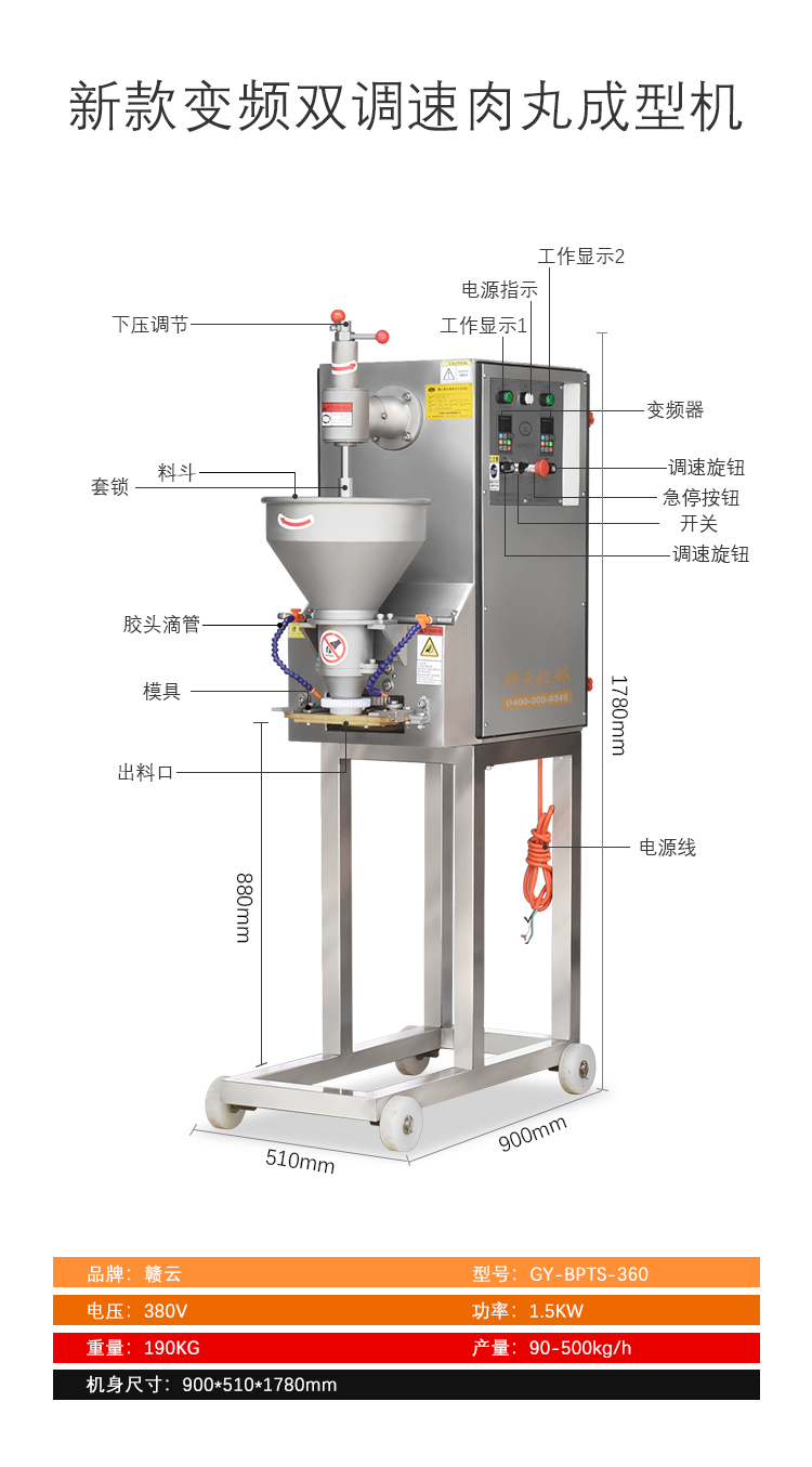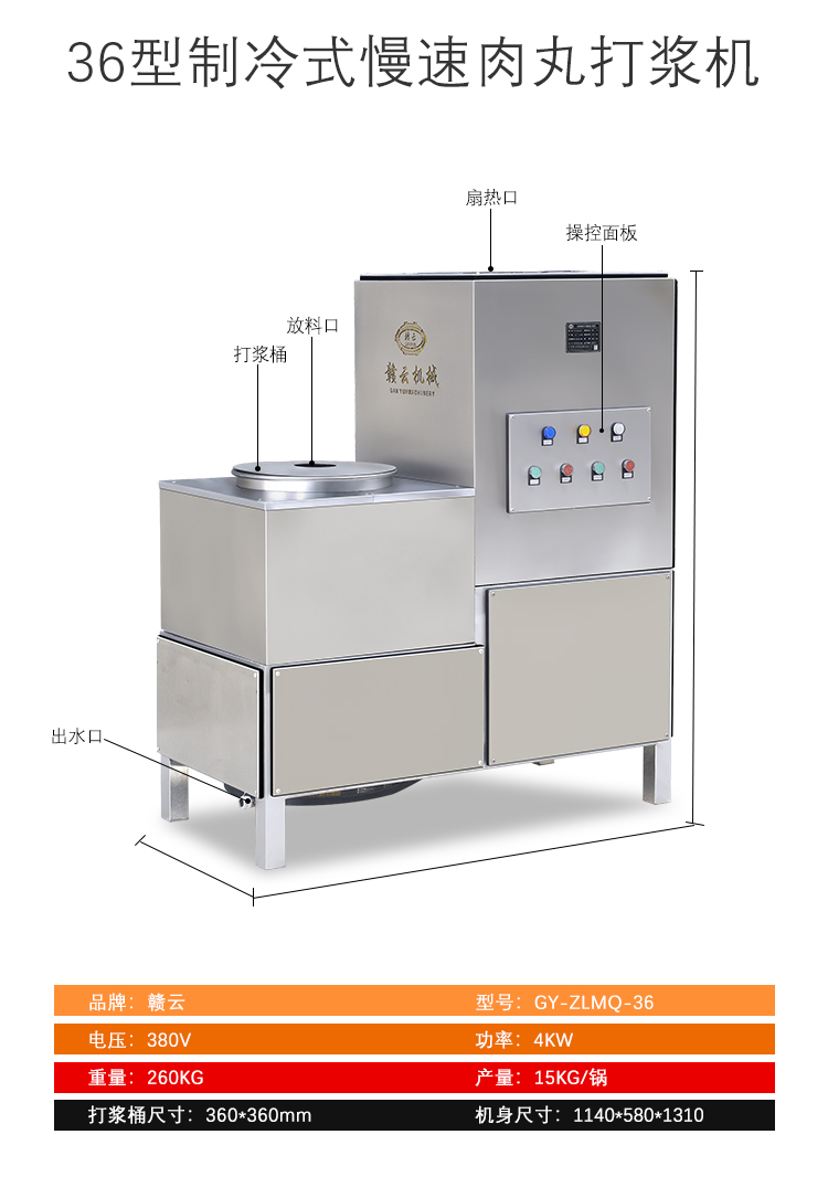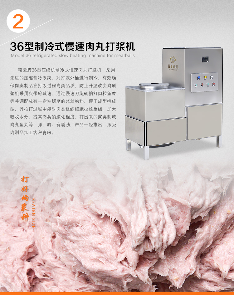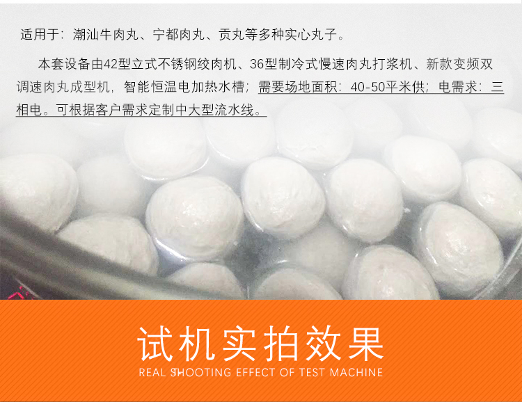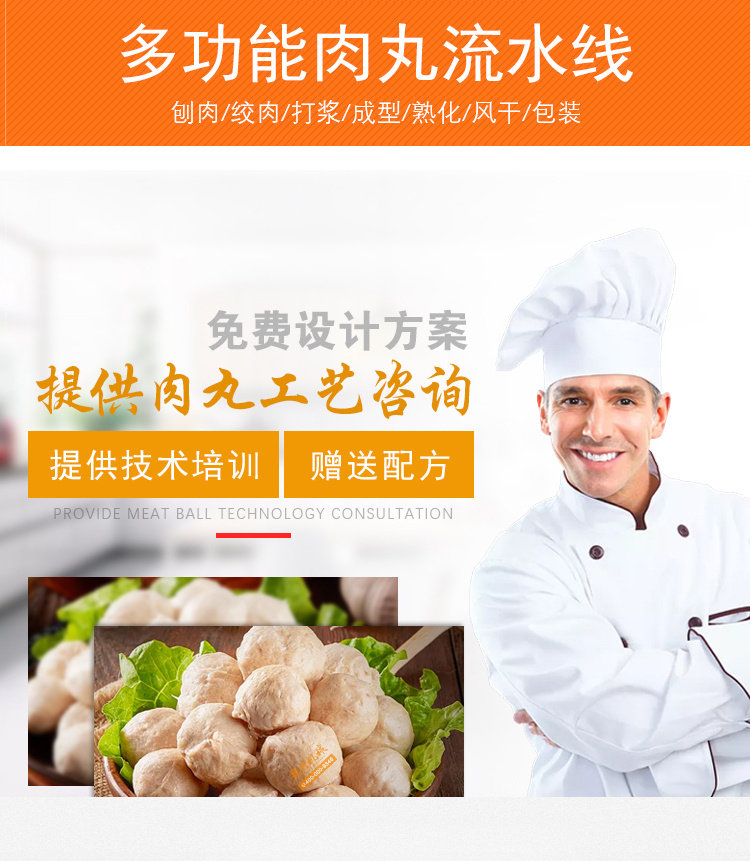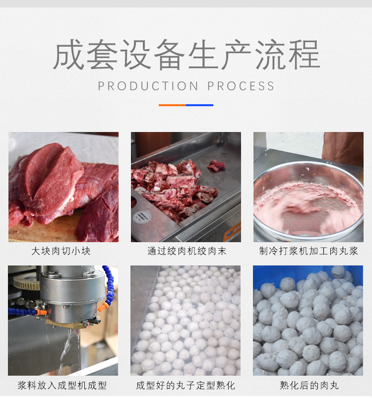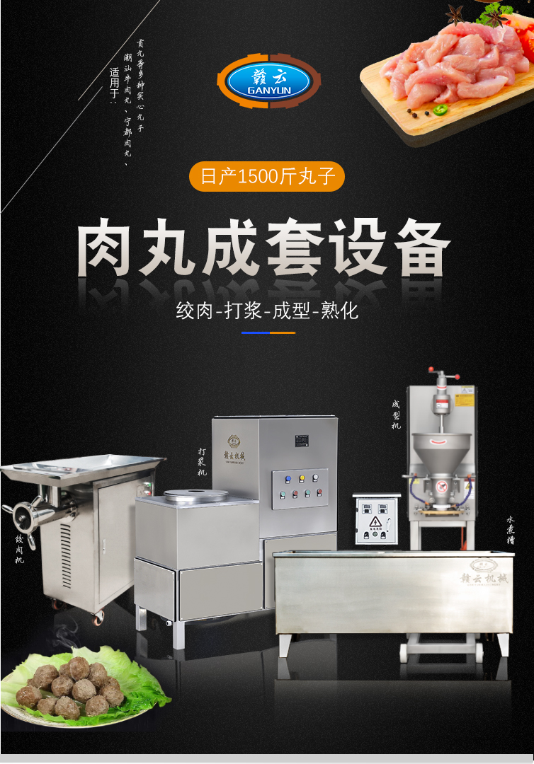 用于肉類的絞肉、打漿及肉丸的成型和熟化,可生產各類牛肉丸、素丸、魚丸、豬肉丸、火鍋丸子等各類實心丸子。