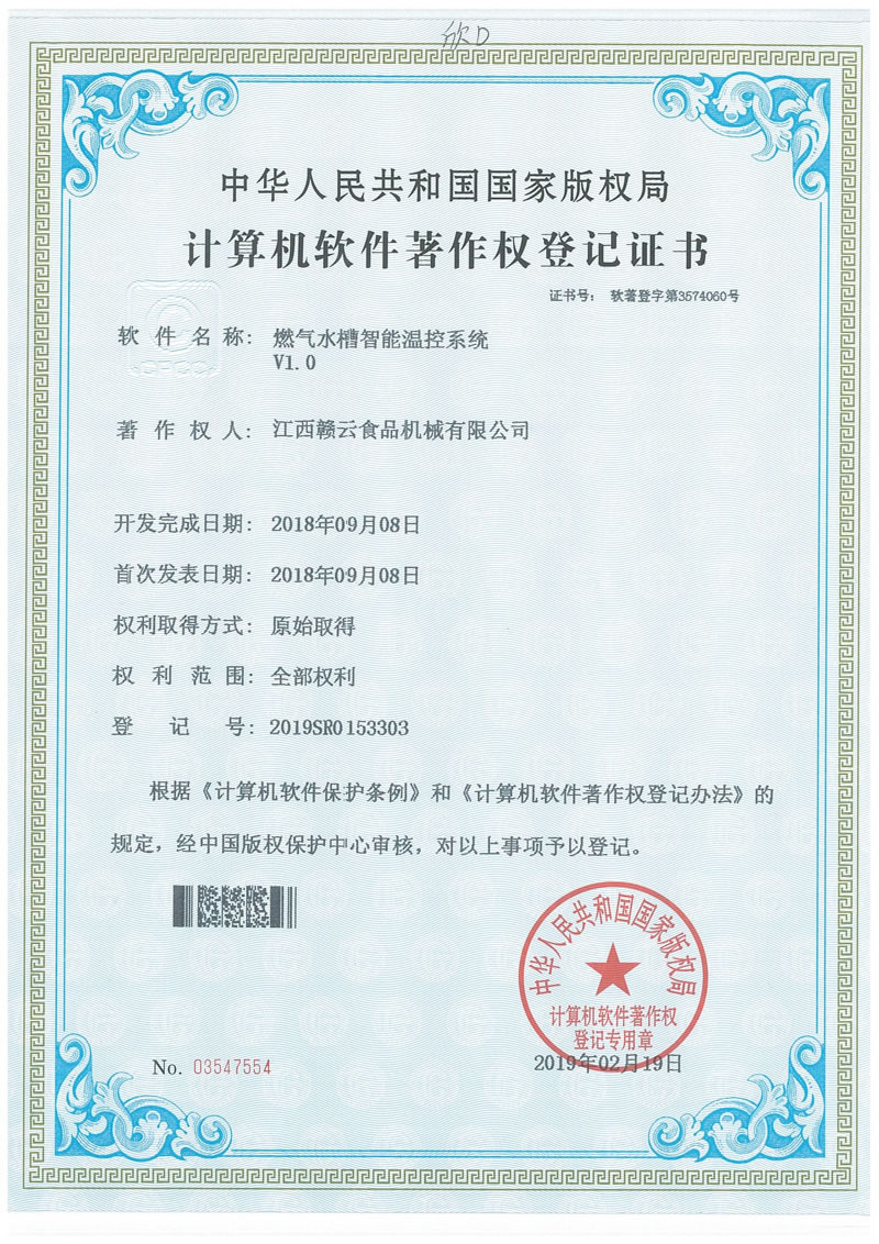 計算機軟件著作權(quán)登記證書(燃?xì)馑壑悄軠乜叵到y(tǒng))