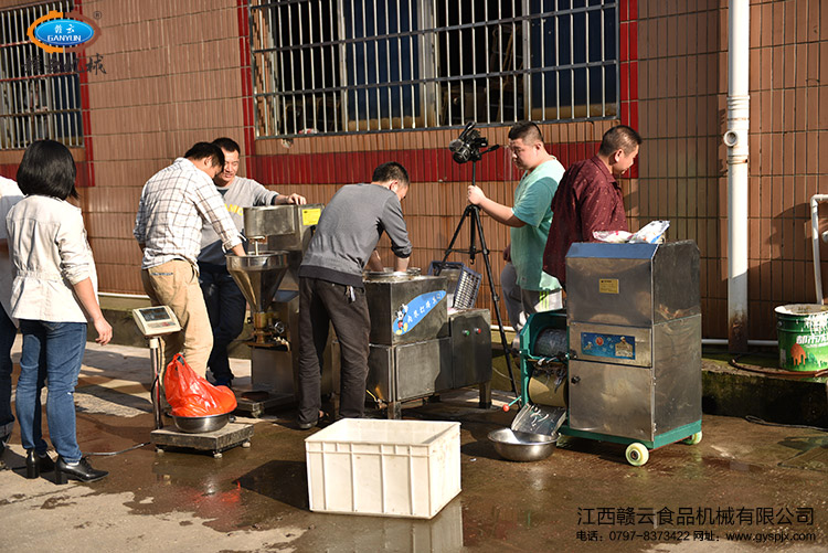 2016年4月底,來自上?蛻舻膶嵭聂~丸客戶試機體驗,贛云工藝師為客戶展示了實心魚丸的機械化生產(chǎn)加工過程,制作出符合客戶需求的高品質(zhì)魚丸,本次試機采用了魚肉采肉設(shè)備、絞肉設(shè)備、慢速魚丸打漿設(shè)備和實心魚丸成型設(shè)備。